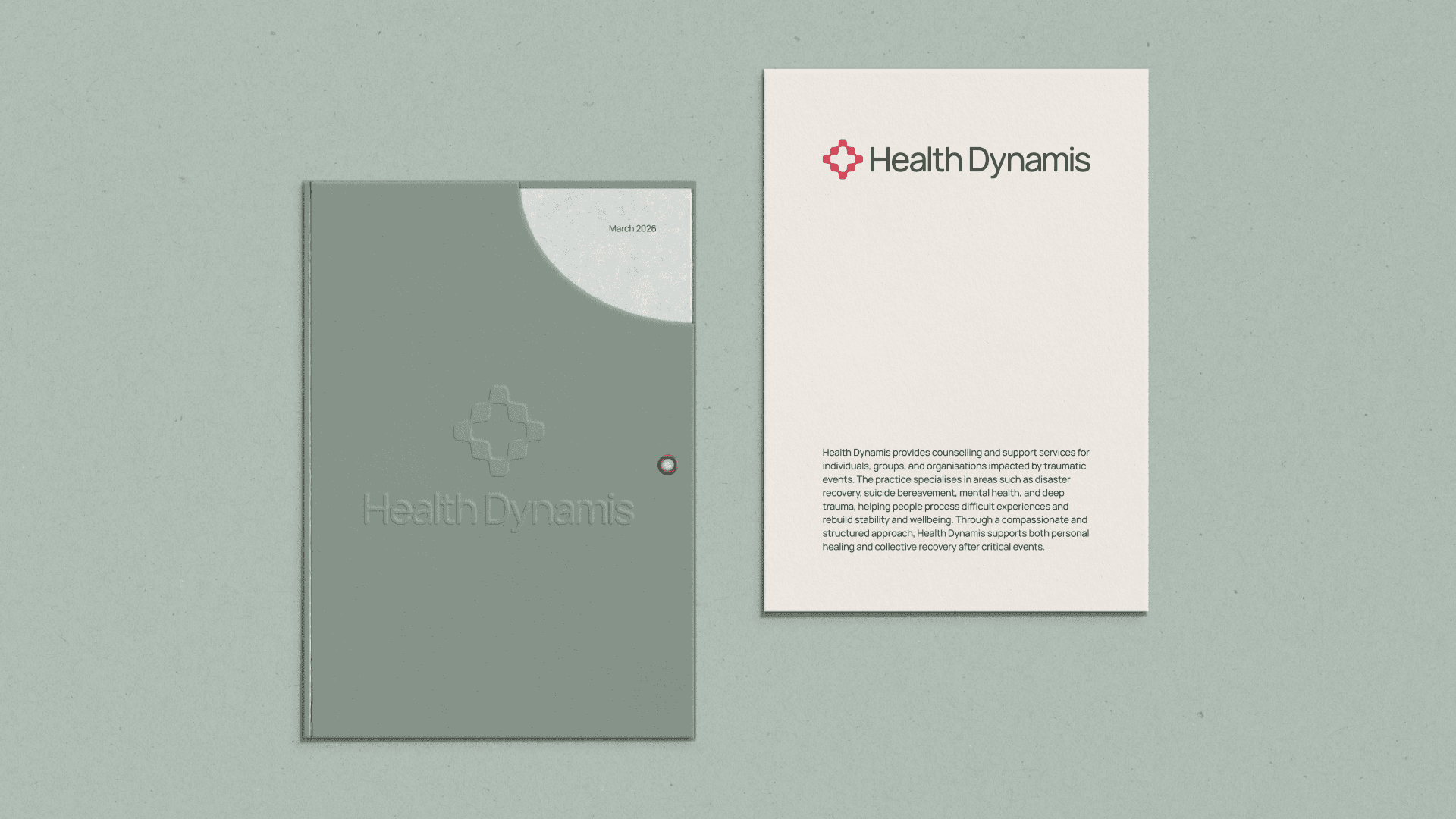 Health Dynamis supports individuals and organisations through trauma-informed counselling and wellbeing programs. The challenge was to create a brand that felt credible and professional while expressing the ideas of strength, care and human potential.